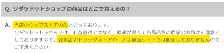 (出典:ソダツドットショップHP「FAQ ご質問」)