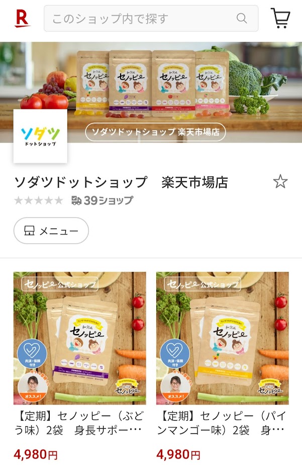 一方で、オンラインショップに取り扱いがありました。「ソダツドットショップ 楽天市場店」です。